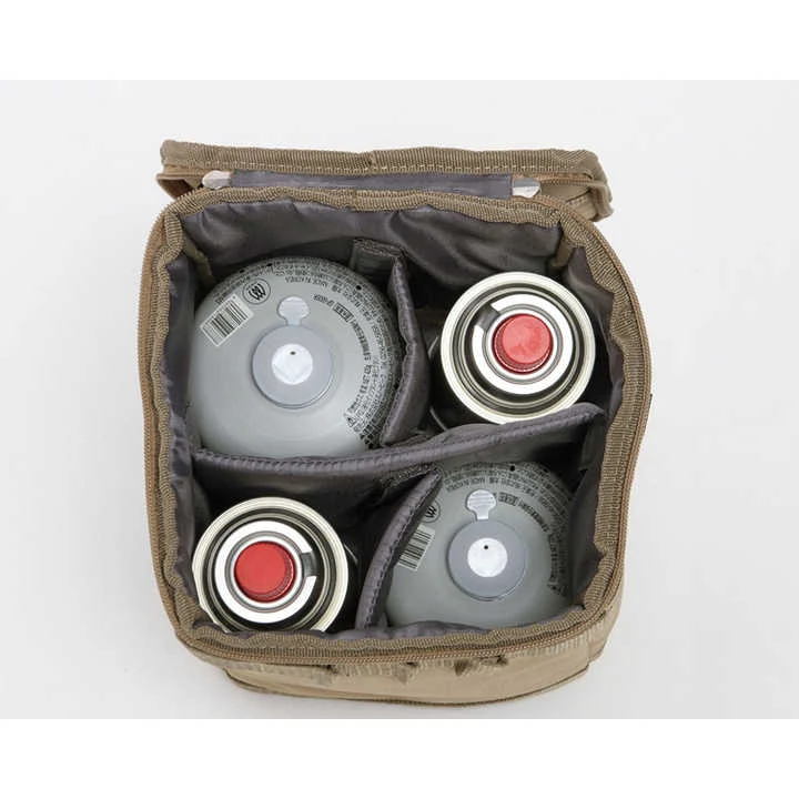 గ్యాస్ స్టవ్ డబ్బా పాట్ క్యారీ బ్యాగ్, ఇతర సారూప్య పరిమాణంతో కూడిన బ్యూటేన్ ఇంధన డబ్బాలు. అంతర్గత డివైడర్ తొలగించబడినప్పుడు ఇతర క్యాంపింగ్ ఉపకరణాల కోసం కూడా ఉపయోగించవచ్చు