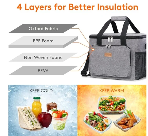 పెద్ద సామర్థ్యం: కొలతలు - 13.8 "(35 సెం.మీ) × 11" (28 సెం.మీ) × 11 "(28 సెం.మీ). పెద్దలకు లంచ్బాక్స్ యొక్క గరిష్ట సామర్థ్యం 24 ఎల్, మరియు 40 డబ్బాల కోక్ (330 ఎంఎల్) ను నిల్వ చేయడానికి తగినంత విశాలమైనది, లేదా శాండ్విచ్లు, సలాడ్, స్నాక్స్, పానీయాలు మరియు ఫ్రూట్స్, స్యాండ్విచ్లు, ఫ్రూట్స్, ఇది.