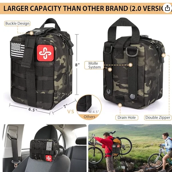 మోల్లె అవుట్డోర్ ప్రథమ చికిత్స పర్సులో మొత్తం 250 పిసిల బహుళార్ధసాధక మనుగడ సాధనాలు ఉన్నాయి. ఇది అత్యంత ప్రాచుర్యం పొందిన మనుగడ గేర్ మరియు సాధనాలను కలిగి ఉంది, ఇది ప్రథమ చికిత్స కిట్, ఇది అత్యవసర పరిస్థితులలో ఒక కుటుంబానికి లేదా స్నేహితుల సమూహానికి చికిత్స చేయడానికి సరిపోతుంది.