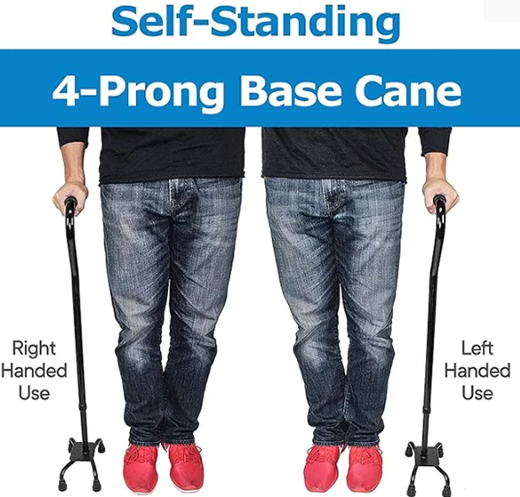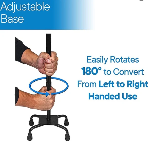 ఓల్డ్ మ్యాన్ మెడికల్ చెరకు, ప్రతి ప్రాంగ్ అదనపు స్థిరత్వం మరియు భద్రత కోసం యాంటీ స్లిప్ రబ్బరు చెరకు చిట్కాతో కప్పబడి ఉంటుంది. క్వాడ్ బేస్ దీనిని స్వీయ స్టాండింగ్ చెరకుగా చేస్తుంది, ఇది నేలపై పడటం లేదా పడిపోవడాన్ని తొలగిస్తుంది. మీరు వంగడం లేదా చేరుకోలేనప్పుడు శస్త్రచికిత్స తర్వాత పర్ఫెక్ట్.