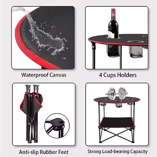 అవుట్డోర్ డైనింగ్ బీచ్ టేబుల్. ఫోల్డబుల్ స్క్వేర్ కాన్వాస్ టేబుల్ను ఇంటి లోపల మాత్రమే కాకుండా క్యాంపింగ్, ఫిషింగ్, హైకింగ్, బీచ్, పిక్నిక్, బిబిక్యూ, వంట కోసం కూడా ఉపయోగించవచ్చు. , కీలు మొదలైనవి, ఇది బహిరంగ కార్యకలాపాల సమయంలో అల్పాహారం సులభం మరియు శుభ్రంగా చేస్తుంది. పట్టిక యొక్క పై స్థాయిలో, ఆహారాన్ని పట్టుకోవటానికి అదనపు స్థలం కోసం మరొక శ్రేణి ఉంది.