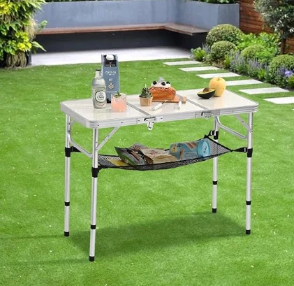 సర్దుబాటు చేయగల ఎత్తు: తేలికపాటి మడత పట్టికలో 3.2 అంగుళాలు, 20.5 అంగుళాలు మరియు 27.5 అంగుళాలతో సర్దుబాటు చేయగల ఎత్తులు ఉన్నాయి. మీరు మీ భోజనాన్ని పచ్చికలో అతి తక్కువ ఎత్తులో ఆస్వాదించవచ్చు, అయితే అత్యధిక ఎత్తులో కుర్చీతో హాయిగా కూర్చోండి