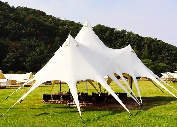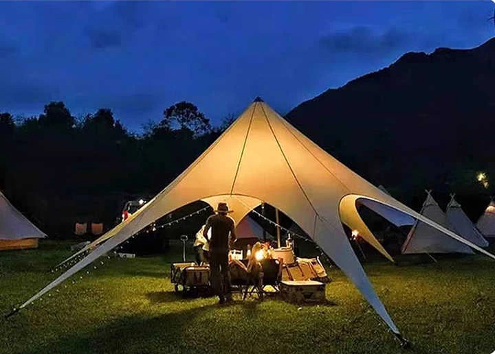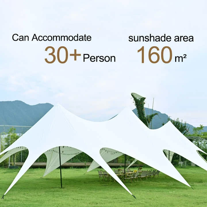 సన్షేడ్ వాటర్ప్రూఫ్ పెద్ద బహిరంగ గుడారాలు వర్షంలో ఆరుబయట సమయం హాయిగా మరియు మన్నికైనవి, కాన్వాస్ గుడారాల కంటే శ్రద్ధ వహించడం సులభం